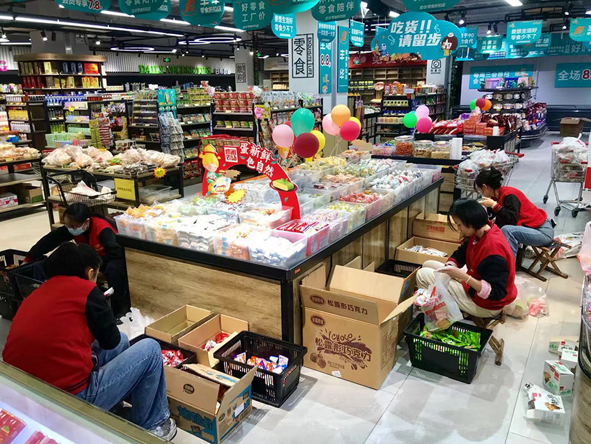 二十一周年慶期間,民生店同事們齊心協力,加班加點提前將店慶福利贈品大白菜擺放在兌獎處,以便顧客兌換領取。